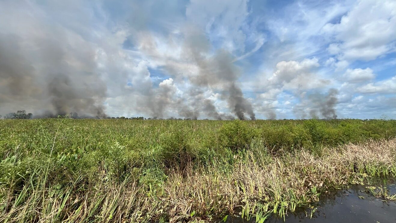 The St. Johns River Water Management District is conducting a 471-acre prescribed burn in the southern portion of the west sawgrass marsh of Emeralda Marsh Conservation Area in Lake County, situated in the Upper Ocklawaha River Basin. The burn’s purpose is to reduce hazardous fuel loads and maintain fire dependent wetland natural communities.