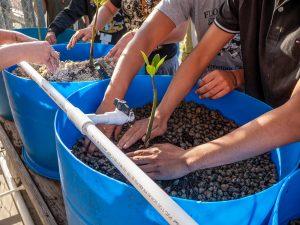 During the 2023–2024 school year, Wekiva High School math teacher Hai-Ahn Nguyen used her Blue School Grant from the District to convert half of her classroom’s aquaponic garden from freshwater to saltwater, allowing her students to be able to plant and grow mangroves.