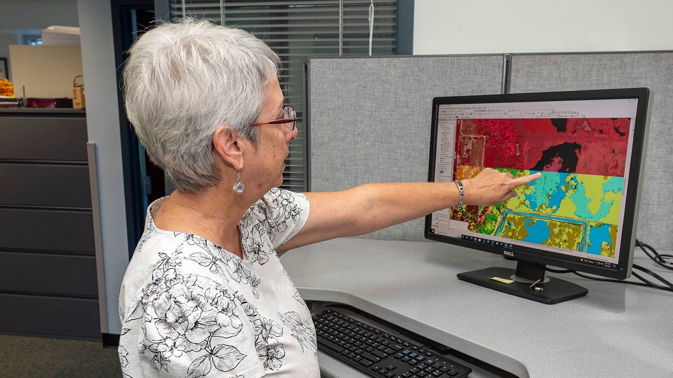 Dr. Dianne Hall, a District ecologist, works on a mapping project in her Palatka office.