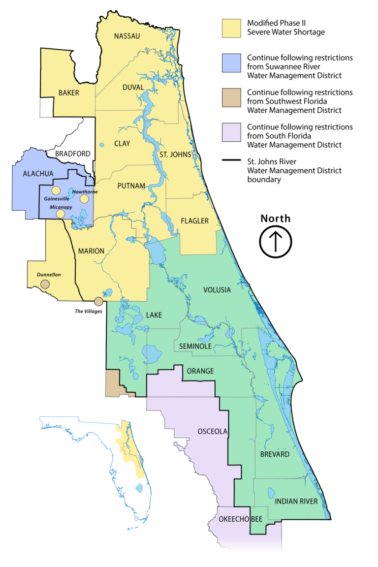 All of Marion County, including the city of Ocala, is to follow the St. Johns restrictions. The only exceptions are The Villages and the city of Dunnellon, which should follow restrictions of the Southwest Florida Water Management District.